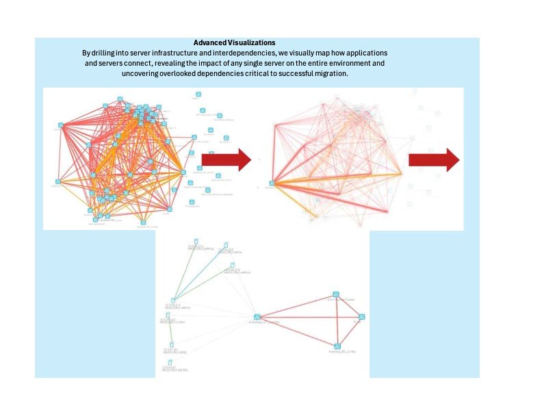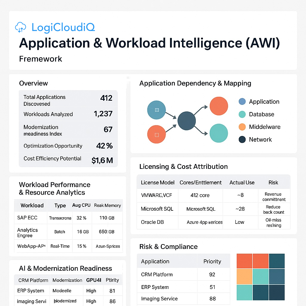We deploy our proprietary AWI framework to map workloads, dependencies, and performance metrics — delivering visibility into your entire infrastructure landscape.
